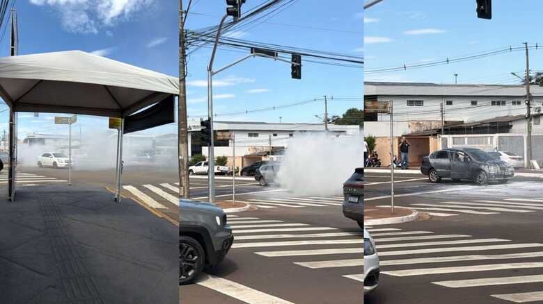 Um carro pegou fogo na tarde desta sexta-feira (6) no cruzamento da Avenida Fernando Corrêa da Costa com a Rua Pedro Celestino, em Campo Grande.