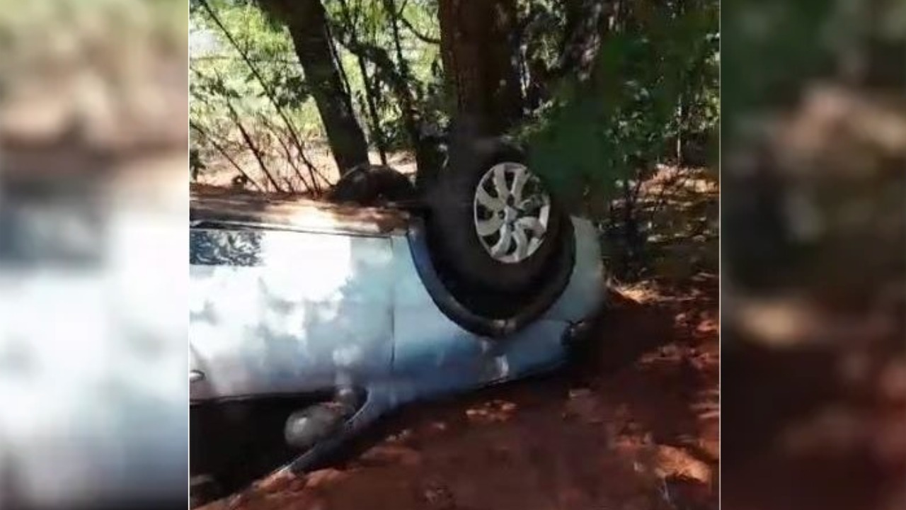 Carro capotou e parou nas margens da rodovia (WhatsApp/JD1)