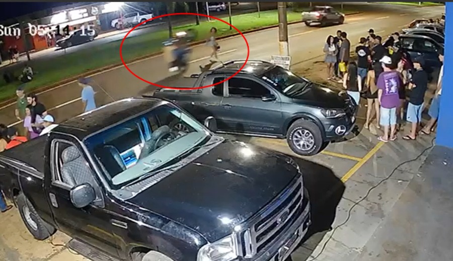 Conforme imagens de câmera de segurança, a jovem estava atravessando a avenida e esperou um veículo de passar para continuar a travessia, no entanto, foi atingida pelo motociclista.