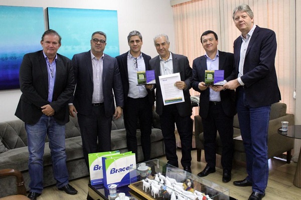 Os representantes da Bracell Márcio Nappo, vice-presidente de Sustentabilidade e Comunicação Corporativa e Leonardo Genofre, gerente de Relações Institucionais, estiveram em audiência com o governador do Mato Grosso do Sul Reinaldo Azambuja e o secretário de Estado de Produção, Meio Ambiente, Desenvolvimento Econômico e Agricultura Familiar (Semagro) Jaime Verruck, apresentando o “Compromisso Um para Um”.