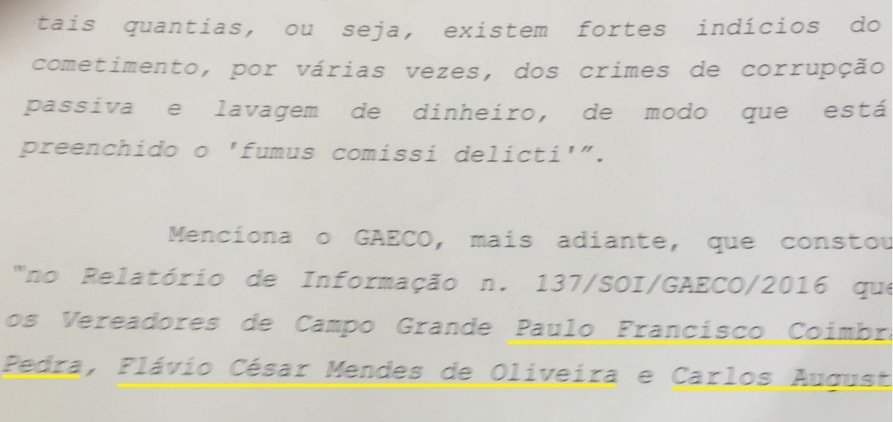 Na denúncia acatada pelo juiz da Primeira Vara Criminal do Tribunal do Júri, Carlos Garcete, a pedido do Gaeco (Grupo de Operações Especiais e Combate ao Crime Organizado), dois vereadores e um ex-vereador são citados por supostamente receber dinheiro do ex secretario municipal André Scaff.