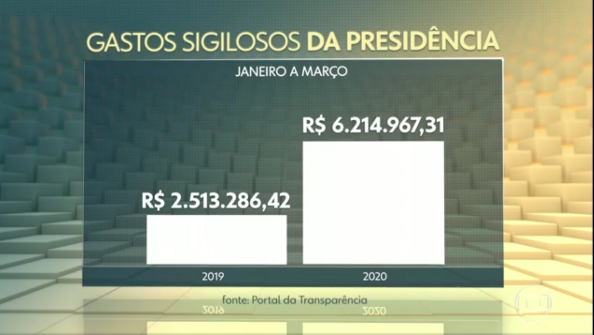 Os dados se referem à Secretaria de Administração da Presidência, ao Gabinete de Segurança Institucional e à Agência Brasileira de Inteligência (Abin). Eles são divulgados somente em valor total, sem detalhamento de quem gastou e do que foi comprado.