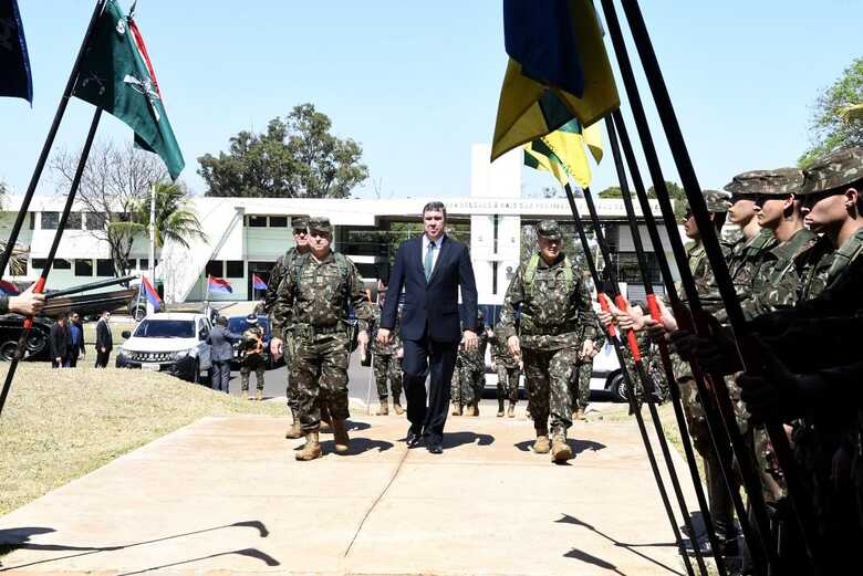 Durante o evento, ele destacou a importância da cooperação entre o Governo do Estado e as Forças Armadas na proteção da fronteira e em ações como a prevenção e o combate a incêndios florestais no Pantanal.