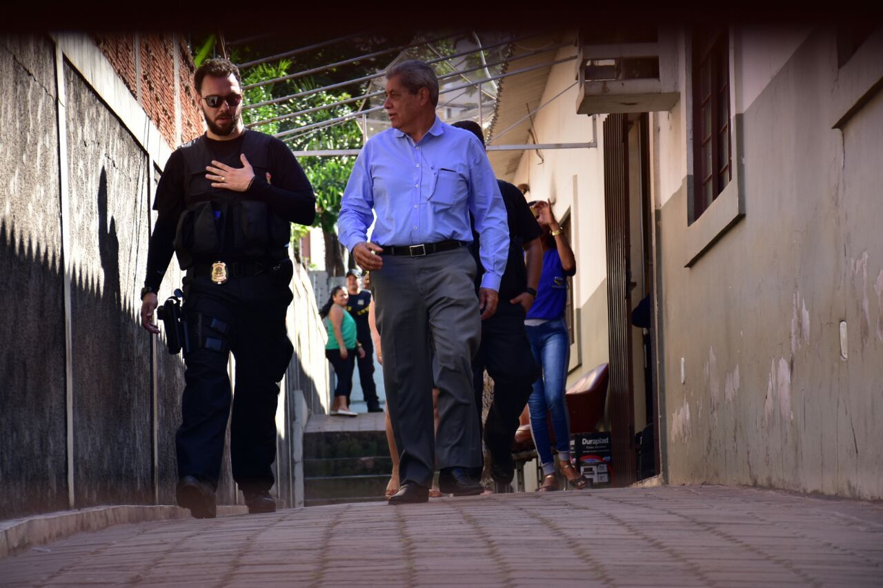 A PF também esteve no apartamento do ex-governador, em Campo Grande, antes das 6h para cumprir mandado de busca e apreensão.