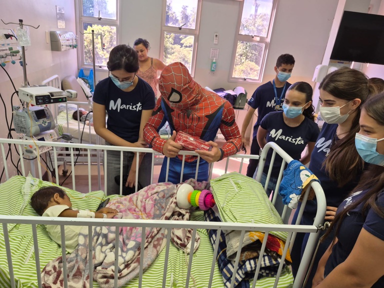 Durante a visita, os estudantes passaram por diferentes setores da unidade, onde entregaram cartas, cantaram músicas e interagiram com pacientes. Parte do grupo utilizou fantasias de super-heróis, em uma iniciativa simbólica voltada a levar conforto e leveza ao ambiente hospitalar.