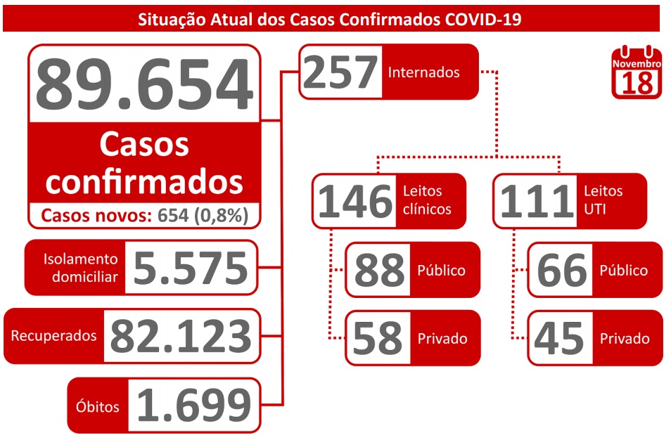 O Estado de Mato Grosso do Sul confirmou mais 689 casos e dois novas mortes em decorrência do coronavírus, que foram registrados nesta quarta-feira (18). O número de infectados já chega a 89.654, a média móvel de casos registrados nos últimos sete dias, está em 523,4.