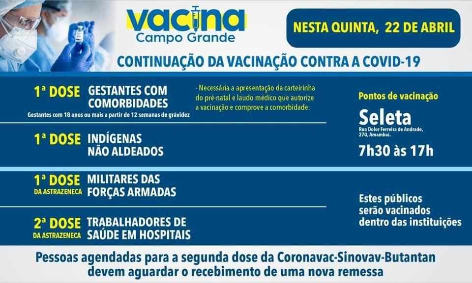 O feriado de Tiradentes foi de muito trabalho para a equipe de imunização contra a Covid-19, em Campo Grande. Distribuídas em quatro pontos, os trabalhadores vacinaram 1.354 pessoas, conforme dados do vacinômetro.