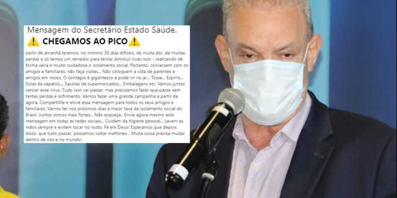 O secretário de Estado de Saúde, Geraldo Resende, alertou para uma mensagem que voltou a circular nas redes sociais, assoada a ele, afirmando que “chegamos ao pico”. O agravamento da pandemia é realidade, o que o chefe da SES disse, mas a mensagem não é de autoria dele.
