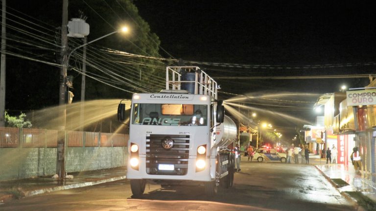 De acordo com a prefeitura, os trabalhos começaram às 18h, com equipes fazendo a desinfecção na Rua Península e Avenida Marinha no Bairro Coophavila 2.