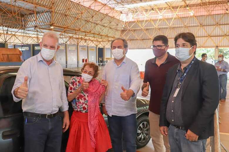 Aos 84 anos, Delanira Pereira Gonçalves, a Delinha, recebeu a primeira dose da vacina contra o coronavírus nesta quarta-feira (10), no drive-thru instalado no Parque Ayrton Senna, Aero Rancho.