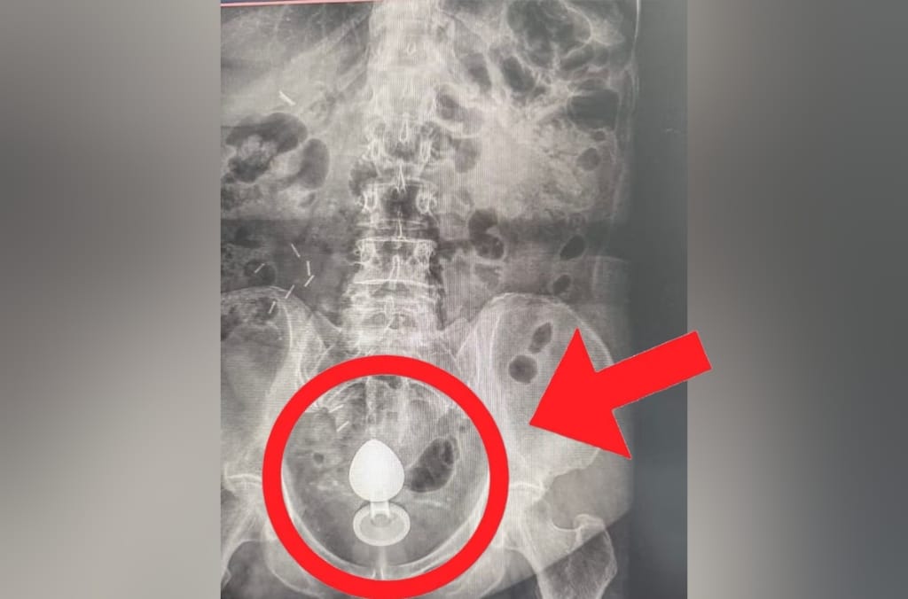 Raio-x mostra com plug anal no intestino Foto: Reprodução