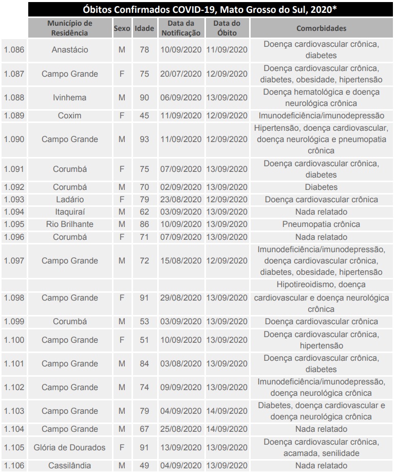 Em 24h, Campo Grande teve nove óbitos pela doença, Corumbá com quatro mortes, e um caso aconteceu em oito municípios, são eles, Anastácio, Cassilândia, Coxim, Gloria de Dourados, Itaquiraí, Ivinhema, Ladário e Rio Brilhante.