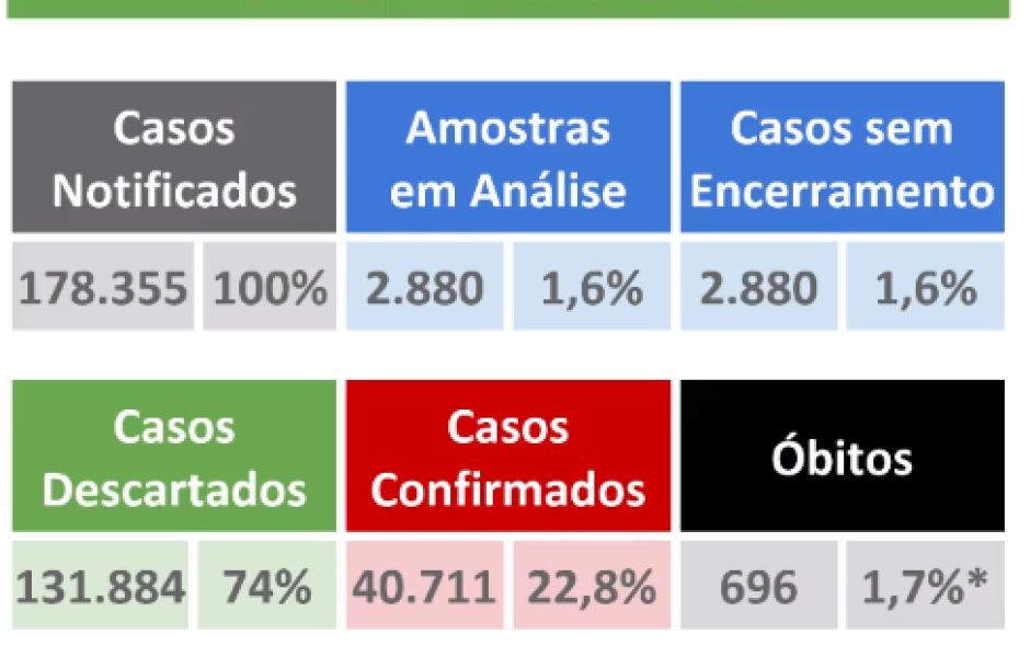 O estado já registra 178.355 casos notificados e 131.884 já foram descartados.