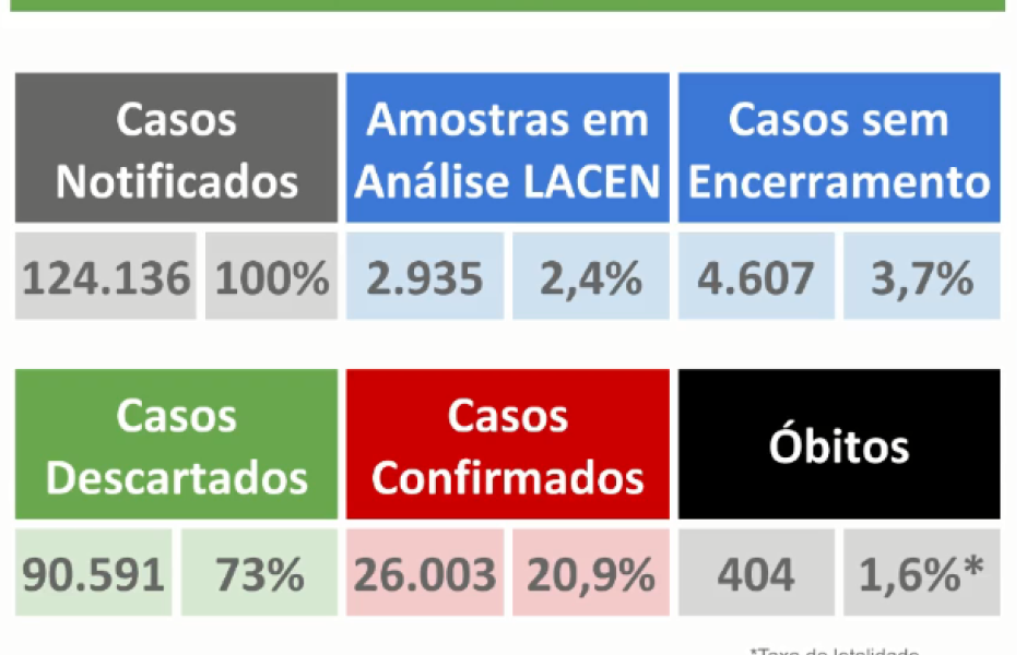 O boletim ainda revela que, no momento, 2.935 casos seguem em análise e 4.607 ainda não foram encerrados. Apesar do número alto, 19.598 pessoas já estão recuperadas.