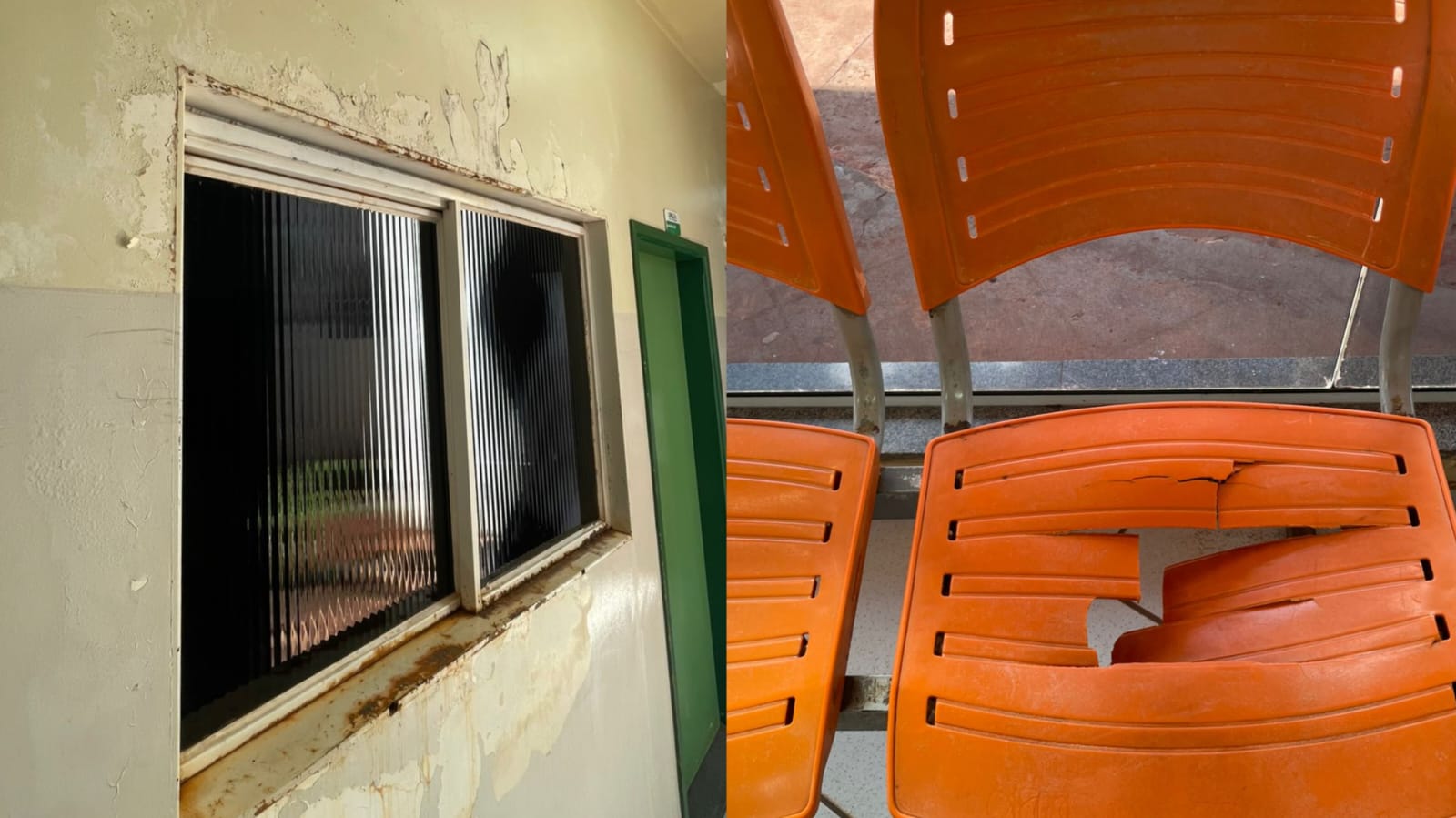 O documento aponta ainda degradação estrutural generalizada, com paredes e tetos deteriorados, janelas quebradas e esquadrias corroídas, além de mobiliário precário.
