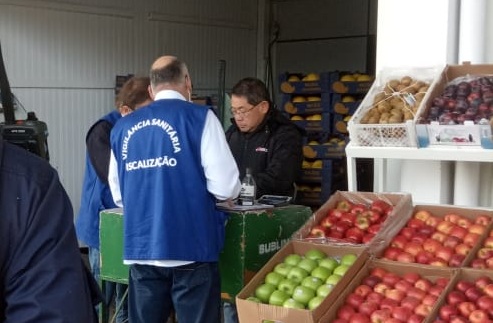 Desde o dia 30 de março, fiscais da Agência Estadual de Vigilância Sanitária Animal e Vegetal (Iagro) abordam motoristas de caminhão e realizam uma desinfecção externa dos caminhões que chegam ao local.