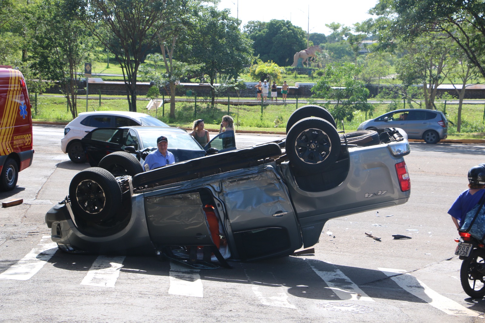 Um acidente de trânsito com capotamento de uma Chevrolet S10 foi registrado na manhã desta terça-feira (20), no cruzamento da rua Professor Luiz Alexandre de Oliveira com a rua Manoel Inácio de Souza, na região do bairro Royal Park, em Campo Grande.