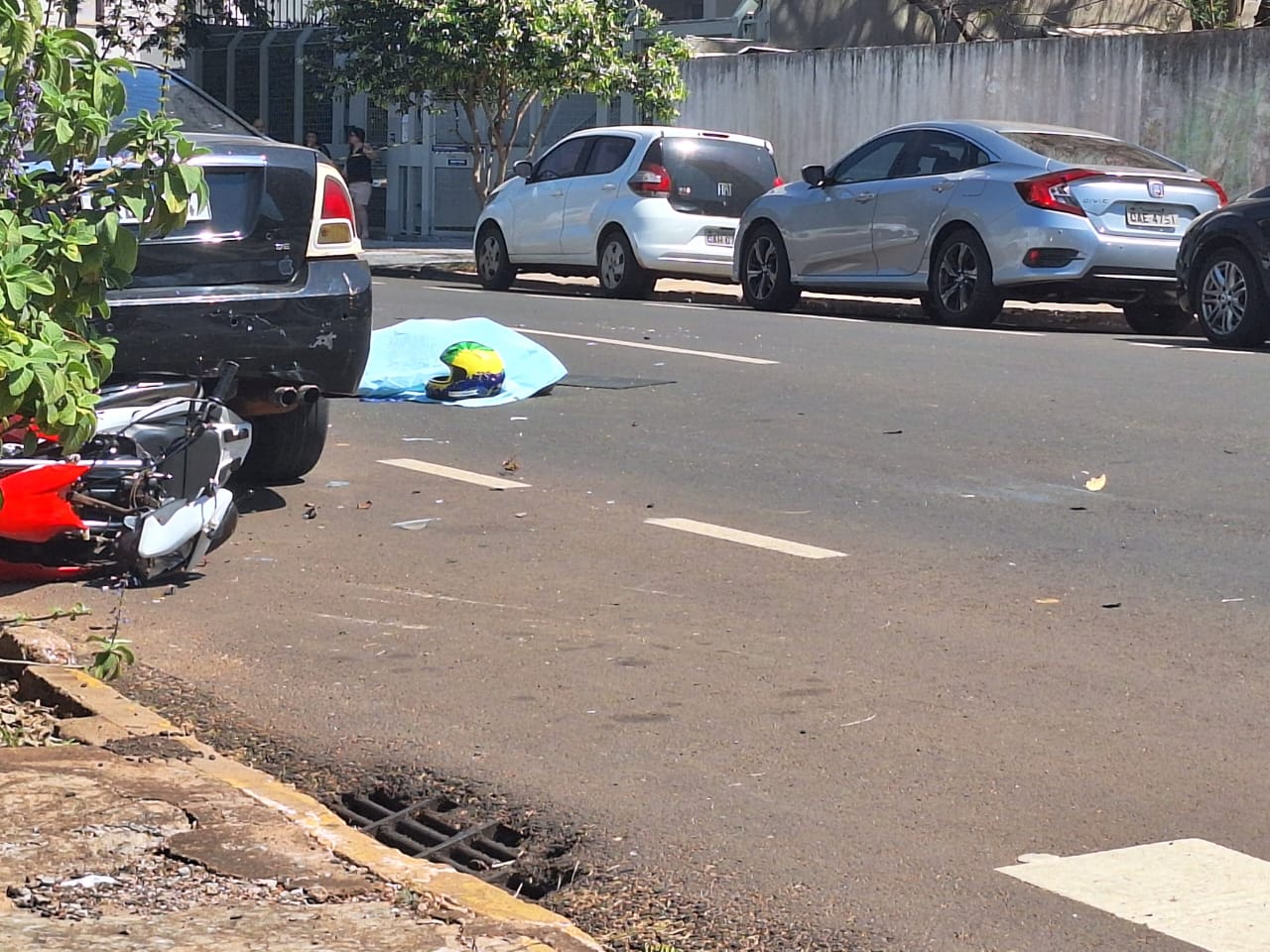 Motociclista ainda bateu na traseira de um veículo estacionado (Sarah Chaves)