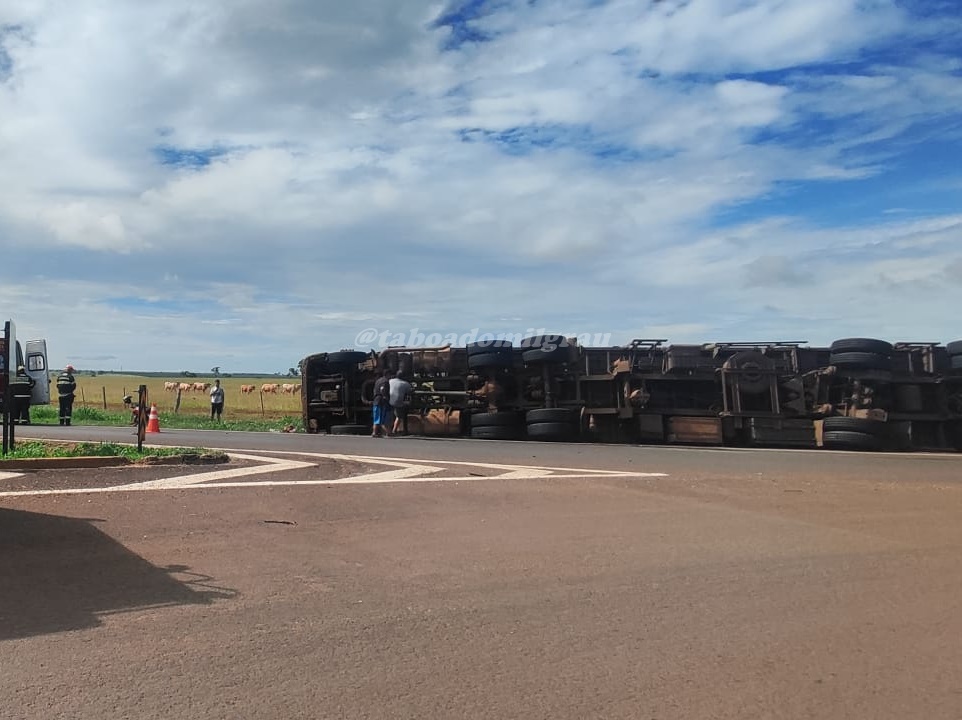 Criança, que não teve a idade revelada, ficou ferida durante o tombamento de uma carreta na manhã desta quinta-feira, dia 29, no Trevo das 7 Cruzes, em Aparecida do Taboado - a 457 quilômetros de Campo Grande.