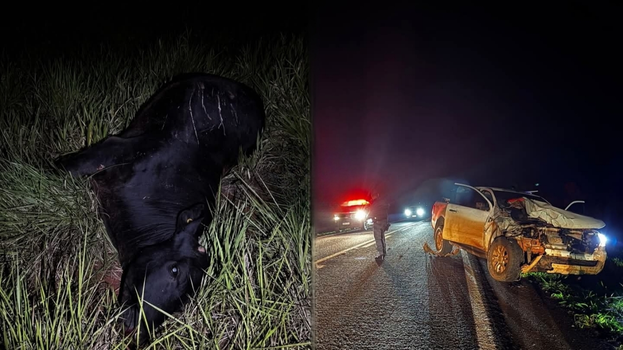 Motorista, que não teve a identificação revelada, passou por um enorme susto na noite desta segunda-feira, dia 17, ao colidir a caminhonete que conduzia contra uma vaca solta na pista da BR-060, entre Nioaque e Sidrolândia.