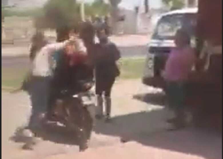 Após levar surra, a amante sobe na garupa e vai embora com o homem casado, como se nada tivesse acontecido.