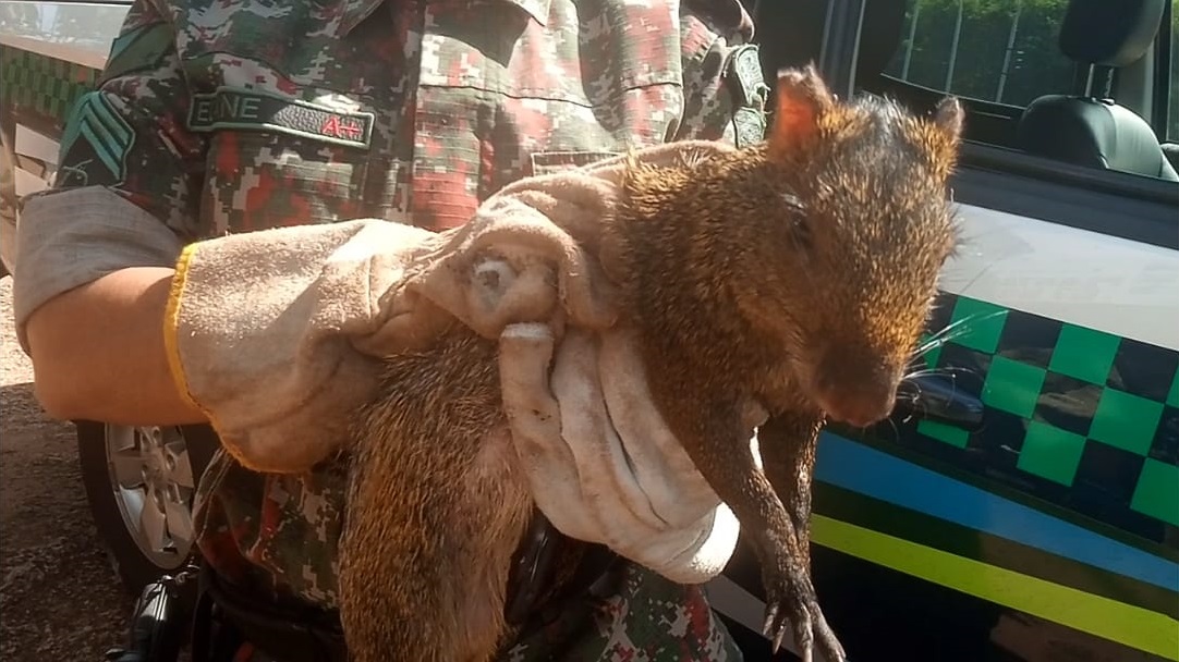 Uma moradora do bairro Tijuca, em Campo Grande, ligou nesta quinta-feira (19) por volta das 14h30 para a Polícia Militar Ambiental (PMA), informando que uma cutia estava no quintal dela, muito agitado e sem conseguir sair.